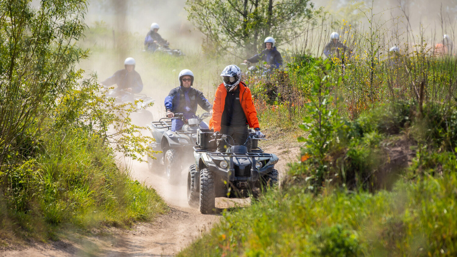 Een ruim 800 meter lange track ligt voor je klaar. Met groepjes rijden jullie samen met de instructeur over het uitdagen parcours. Kombochten, heuvels, stof, modder, zand, alles zal voorbij komen!
